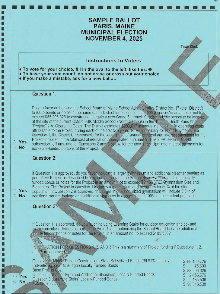 MSAD17 New Middle School Referendum Ballot.
