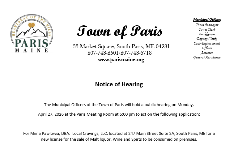 Public Hearing April 27, 2026- Local Cravings