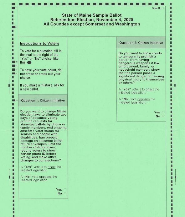 State of Maine Ballot. Nov 4th. Fire Station 8am-8pm